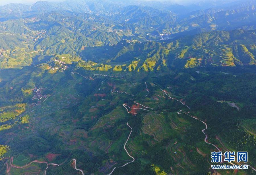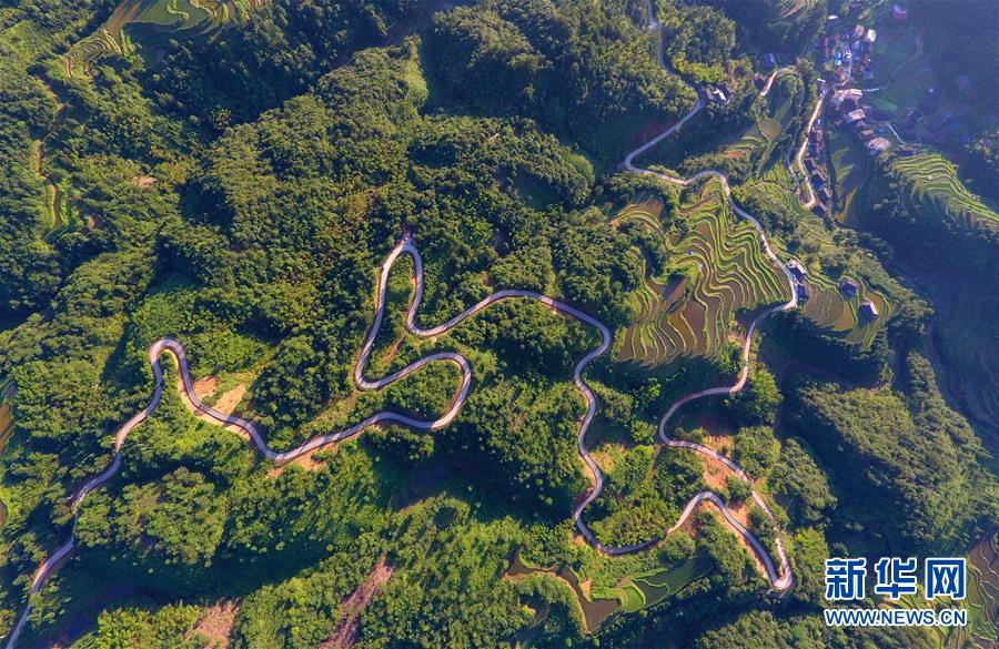 這是融水苗族自治縣桿洞鄉(xiāng)百秀村的村屯公路(6月19日無人機(jī)拍攝)。新華社記者黃孝邦攝