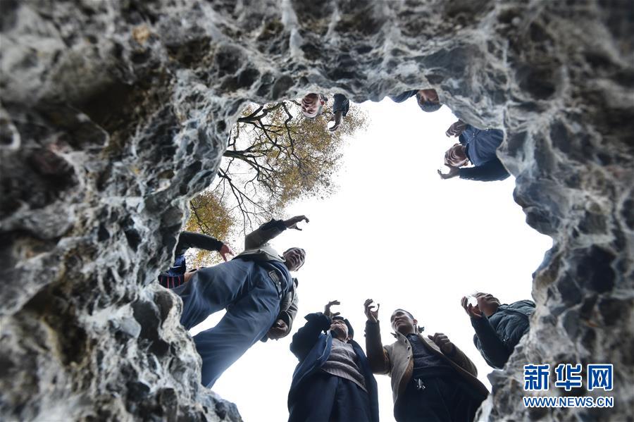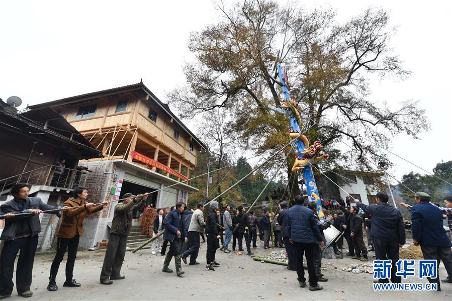 烏英苗寨村民在立新蘆笙柱(12月22日攝)。新華社記者黃孝邦攝