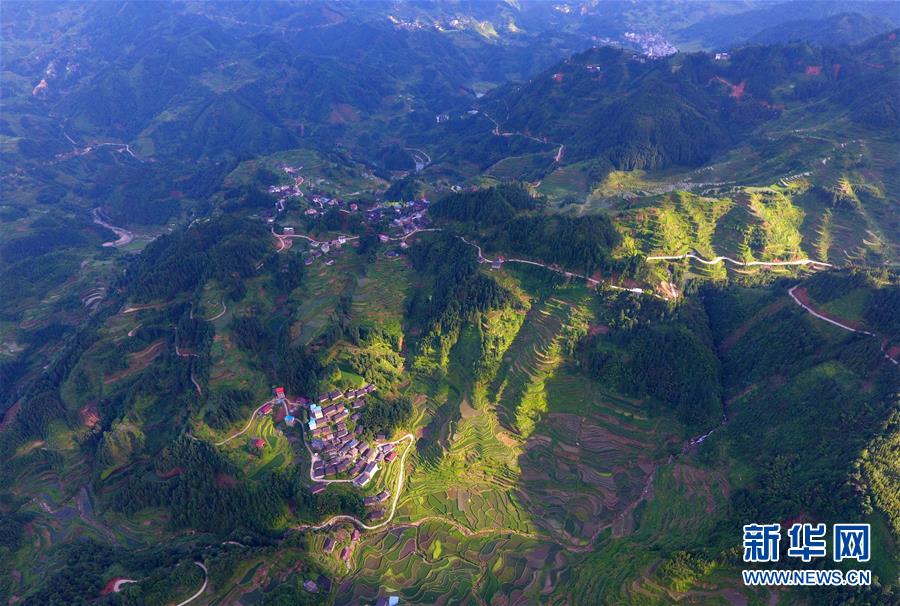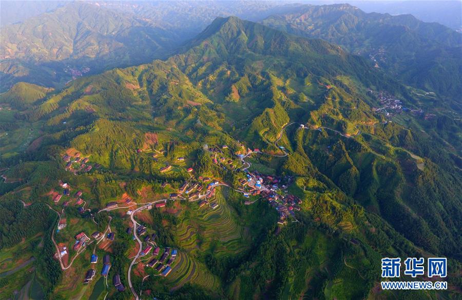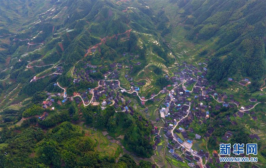 在融水苗族自治縣桿洞鄉(xiāng)黨鳩村下黨鳩屯,道路已經(jīng)修到家家戶戶門前(6月21日無人機(jī)拍攝)。新華社記者黃孝邦攝