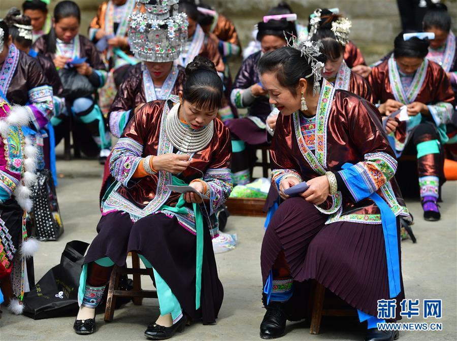 婦女在烏英苗寨的培訓(xùn)課上學(xué)習(xí)刺繡(10月18日攝)。新華社記者黃孝邦攝
