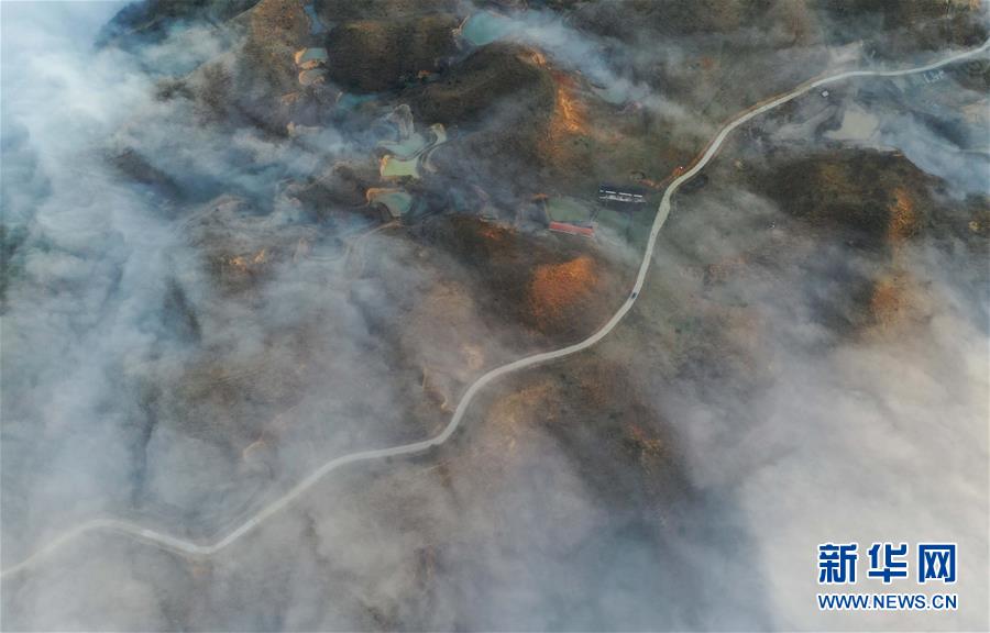 這是融水苗族自治縣桿洞鄉(xiāng)堯告村的村屯公路(1月5日無人機(jī)拍攝)。新華社記者黃孝邦攝
