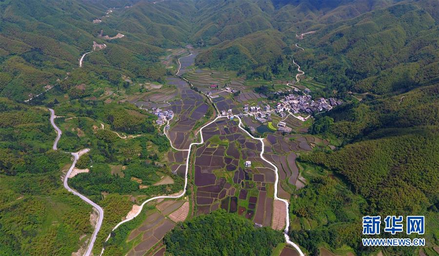 這是融水苗族自治縣桿洞鄉(xiāng)黨鳩村烏英苗寨的公路(4月18日無人機(jī)拍攝)。新華社記者黃孝邦攝