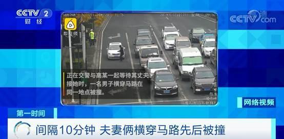 大概10分鐘左右,一名男子小跑著橫穿機動車道,在高某被撞的同一地點,也被一輛白色小車給撞倒。而這名男子正是高某的丈夫。