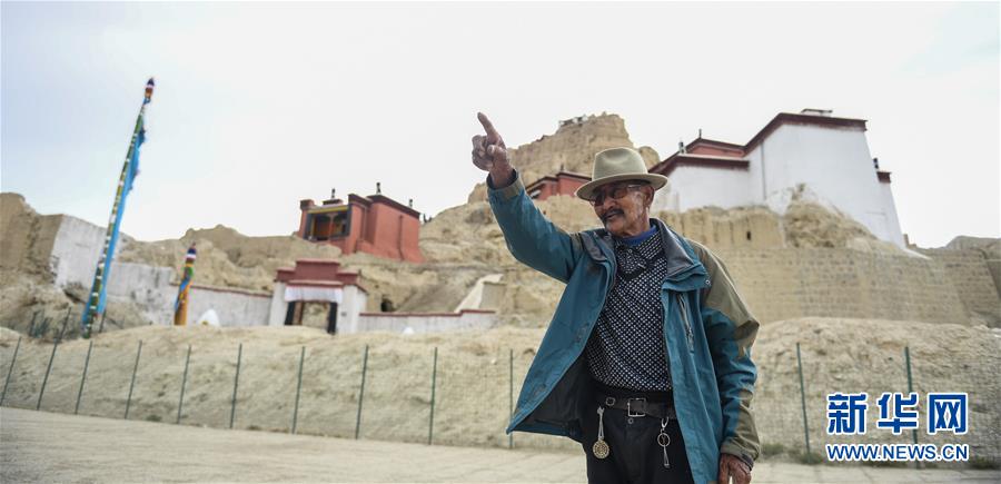達瓦次仁和他曾經(jīng)居住的、位于古格遺址前的家(7月30日攝)。新華社記者晉美多吉攝