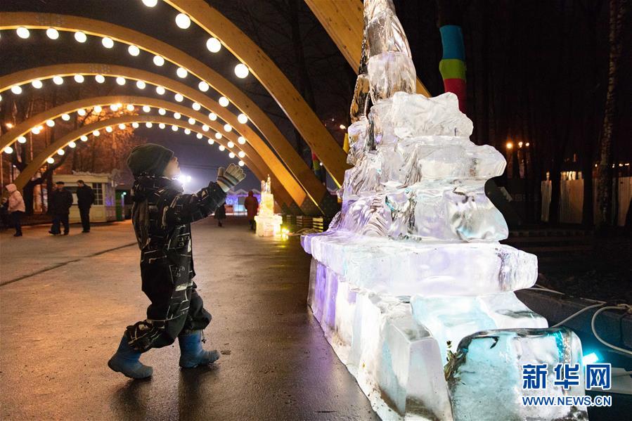 12月24日,在俄羅斯首都莫斯科,小朋友參觀冰雕藝術(shù)展。 哈爾濱冰雕藝術(shù)展24日在莫斯科開(kāi)幕,現(xiàn)場(chǎng)展出了哈爾濱大劇院、防洪紀(jì)念塔以及莫斯科紅場(chǎng)建筑群等惟妙惟肖的冰雕作品,吸引眾多游客駐足拍照。 參加本次冰雕藝術(shù)展的十名冰雕師提前抵達(dá)莫斯科,以新中國(guó)成立70周年、中俄建交70周年、“一帶一路”倡議等為主題,為莫斯科民眾奉上了精美的新年禮物。 新華社記者 白雪騏 攝