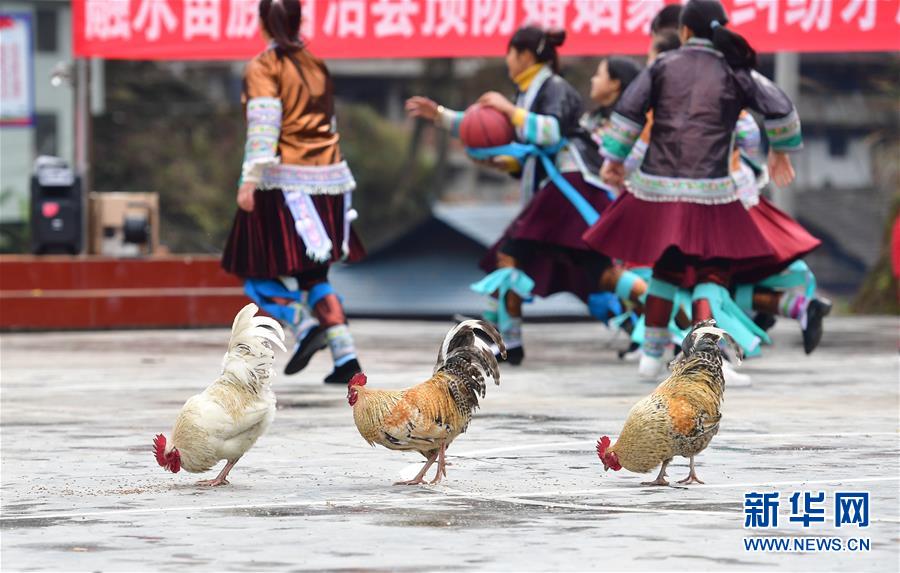 12月25日,苗族婦女參加趣味籃球比賽。 當(dāng)日,廣西融水苗族自治縣桿洞鄉(xiāng)黨鳩村在柳州市婦聯(lián)支持下,在烏英苗寨舉辦家庭運(yùn)動(dòng)會(huì),通過挑禾把、趣味籃球賽等活動(dòng),迎接即將到來(lái)的傳統(tǒng)苗年。 新華社記者 黃孝邦 攝