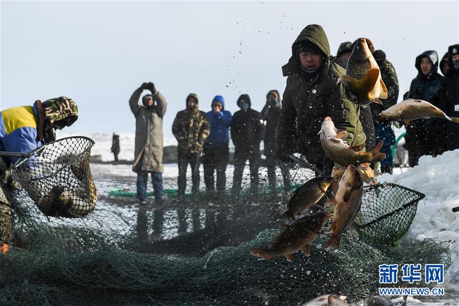 12月18日,工作人員將冬捕魚打撈上岸。當(dāng)日,位于內(nèi)蒙古呼倫貝爾大草原上的諾干湖舉行冬捕活動(dòng),吸引不少游客前來(lái)觀看。冬日的諾干湖冰雪覆蓋,諾干湖冬捕也是當(dāng)?shù)囟韭糜蔚奶厣顒?dòng)之一。新華社記者劉磊攝