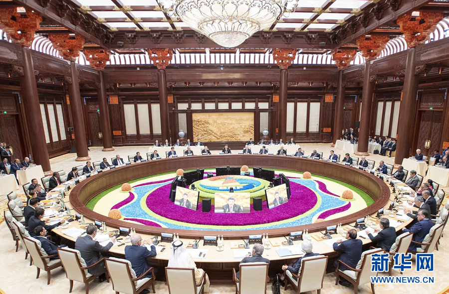 這是4月27日,第二屆“一帶一路”國(guó)際合作高峰論壇在北京雁棲湖國(guó)際會(huì)議中心舉行圓桌峰會(huì),國(guó)家主席習(xí)近平主持會(huì)議并致開(kāi)幕辭。 新華社記者 李濤 攝