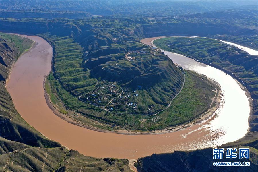 這是8月28日拍攝的山西省永和縣閣底鄉(xiāng)境內(nèi)黃河乾坤灣(無(wú)人機(jī)照片)。 新華社記者 曹陽(yáng) 攝