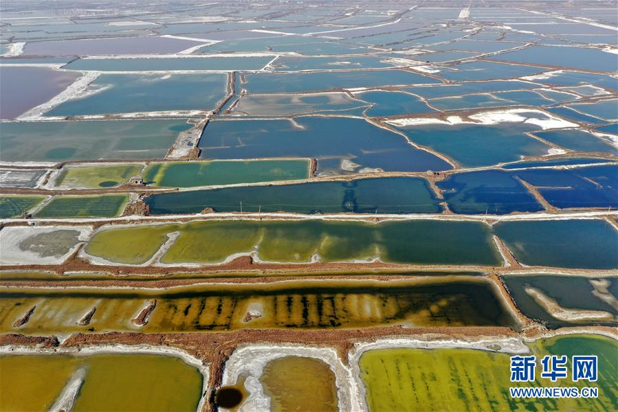 12月27日無人機(jī)拍攝的山西運(yùn)城鹽湖。 冬日時(shí)節(jié),從空中俯瞰位于山西省運(yùn)城市的鹽湖,景色如畫。 新華社記者曹陽攝