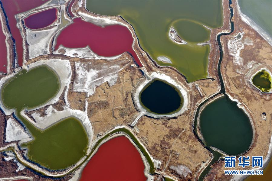 12月27日無人機(jī)拍攝的山西運(yùn)城鹽湖。 冬日時節(jié),從空中俯瞰位于山西省運(yùn)城市的鹽湖,景色如畫。 新華社記者曹陽攝