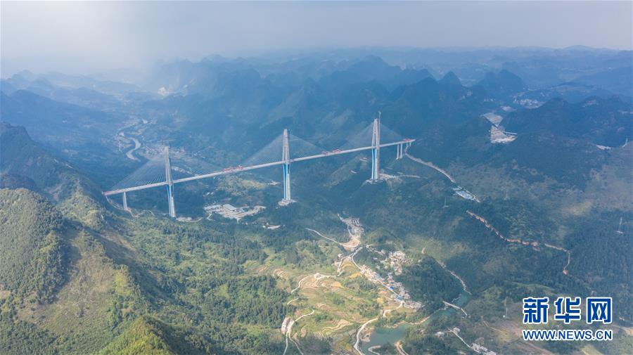 這是9月25日無人機拍攝的平塘特大橋。新華社記者陶亮攝