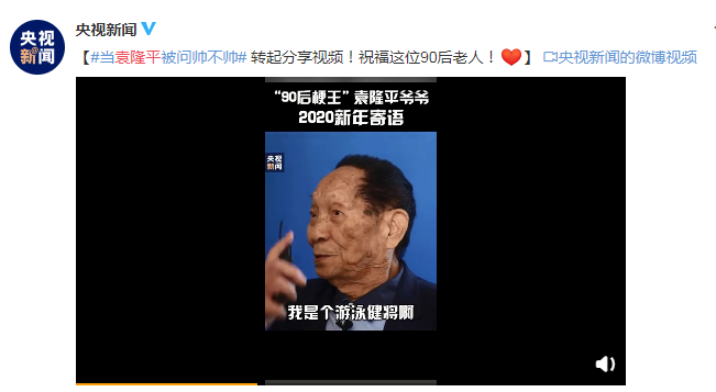 深圳新聞網(wǎng)訊  近日,央視新聞在其官方平臺(tái)下曬出一段袁隆平受采訪的視頻。值此2020年即將來(lái)臨之際,袁隆平先生在視頻中為年輕人們送來(lái)了新年寄語(yǔ),“首先注意身體,這是基礎(chǔ),我年輕時(shí)候喜歡鍛煉,我是個(gè)游泳健將啊,游泳年輕的時(shí)候是武漢市第一名啊”,并且在視頻中回答了一個(gè)記者的問(wèn)題,俘獲了無(wú)數(shù)網(wǎng)友的內(nèi)心。
