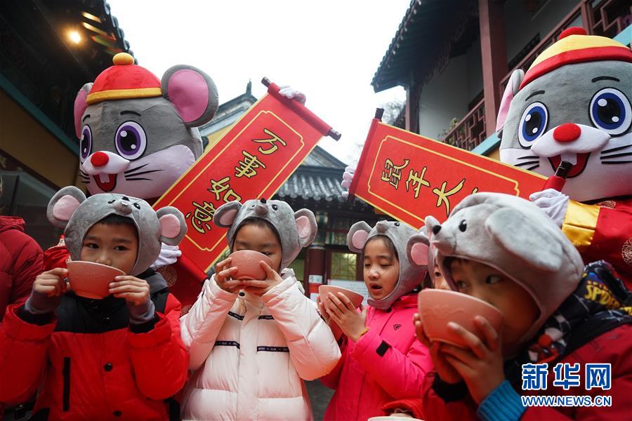 1月2日,小朋友在南京玄奘寺的贈粥送祝福活動現場喝臘八粥。 當日是農歷臘月初八,中國傳統(tǒng)臘八節(jié)。 新華社記者 季春鵬 攝