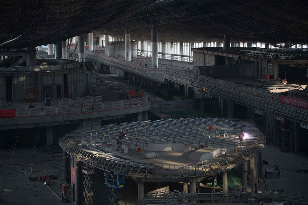 2019年1月20日,北京,探訪(fǎng)北京大興國(guó)際機(jī)場(chǎng)航站樓,建設(shè)工地正在如火如荼地有條不紊地建設(shè)之中。丁幫學(xué)/千龍圖像/視覺(jué)中國(guó)