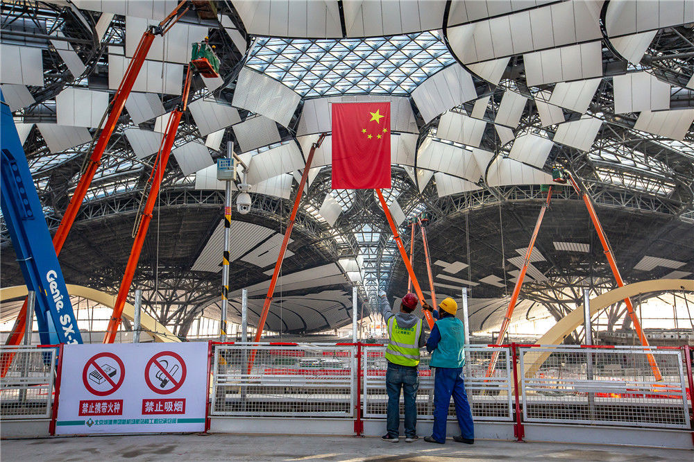 2019年5月24日,北京,新機(jī)場(chǎng)建設(shè)距離竣工時(shí)間還有37天,工程進(jìn)入倒計(jì)時(shí)。機(jī)場(chǎng)開(kāi)建至今不到5年時(shí)間,機(jī)場(chǎng)施工工程將于6月底竣工,將于9月底投入運(yùn)營(yíng),該機(jī)場(chǎng)有望成為世界上規(guī)模最大的機(jī)場(chǎng)之一。任振朝/千龍圖像/視覺(jué)中國(guó)