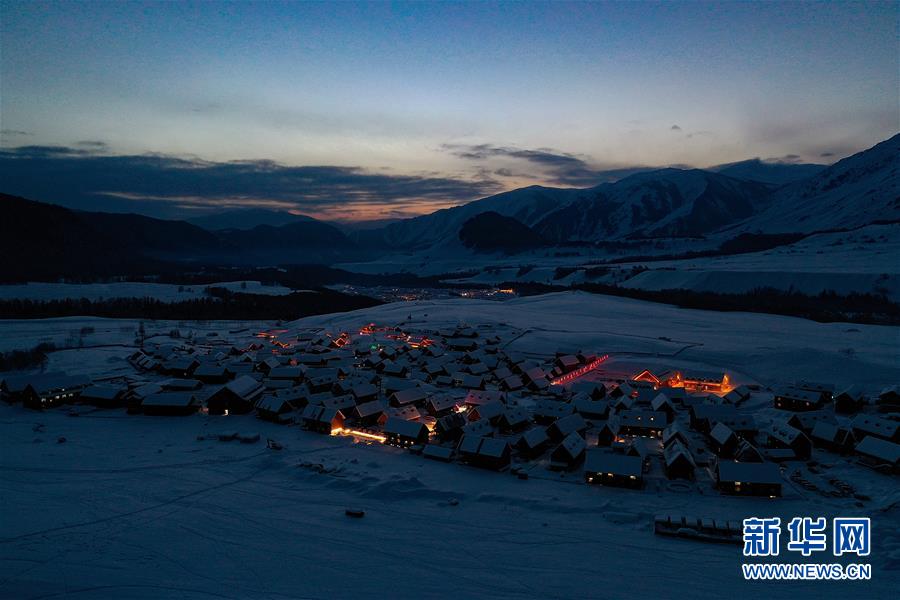 這是2019年12月31日拍攝的傍晚的禾木村(無人機(jī)照片)。 在新疆阿勒泰地區(qū)布爾津縣禾木村,不少游客選擇以觀光旅游的方式“別樣跨年”。游客們觀賞雪鄉(xiāng)風(fēng)景,體驗(yàn)馬拉爬犁、騎馬等冬游項(xiàng)目,參加篝火狂歡、潑雪迎新年等慶祝活動,冰天雪地?zé)崆椴粶p,別有一番風(fēng)情。 新華社記者 宋彥樺 攝