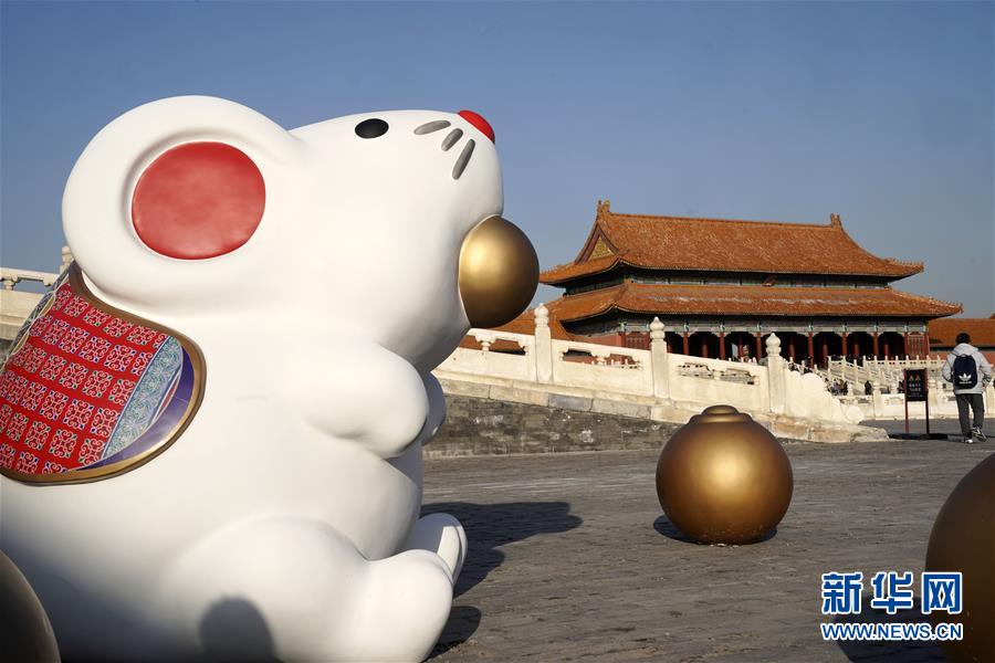2019年12月27日在北京故宮太和門廣場拍攝的“吐寶鼠”。 由故宮博物院、騰訊出品的視頻節(jié)目《故宮賀歲》將于2020年1月1日正式上線,節(jié)目每周1集,每集時長30分鐘,計(jì)劃推出5集。節(jié)目里,主持人將與專家、嘉賓等一起在故宮探尋傳統(tǒng)過大年的習(xí)俗。 新華社記者 金良快 攝