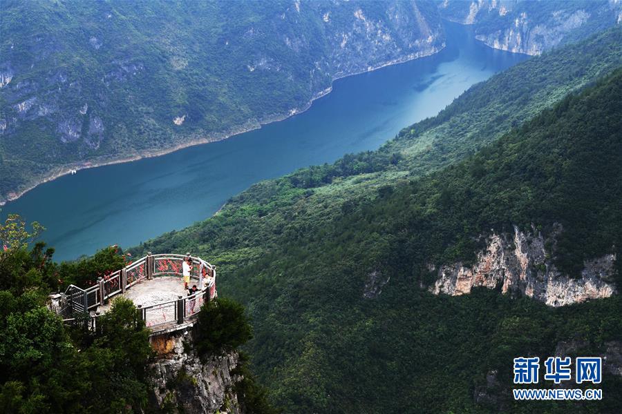 游客在重慶云陽龍缸國家地質(zhì)公園游覽(2019年7月30日攝)。新華社記者王全超攝
