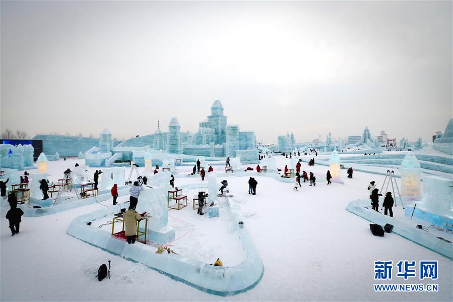 1月6日,參賽者在創(chuàng)作冰雕。新華社記者王松攝