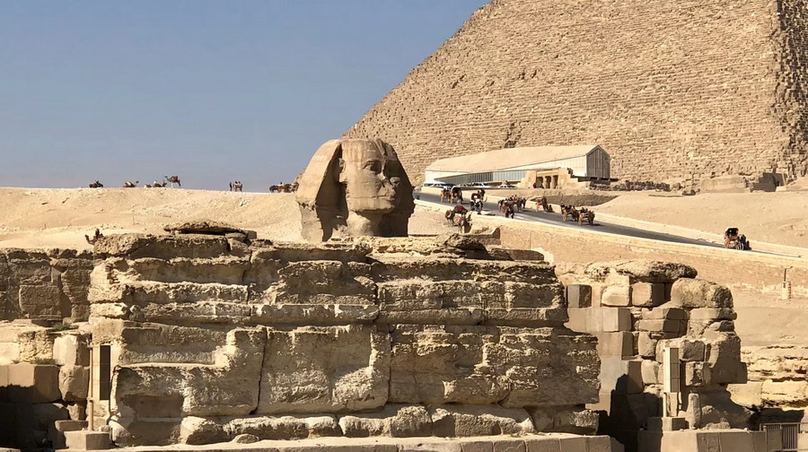 獅身人面像位于埃及吉薩的金字塔墓區(qū),頭像部分一說是古埃及法老哈夫拉按自己的肖像建造。孫衛(wèi)南攝