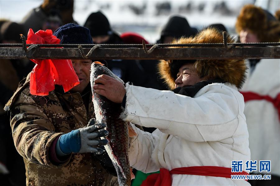 12月18日,工作人員將冬捕魚(yú)打撈上岸。當(dāng)日,位于內(nèi)蒙古呼倫貝爾大草原上的諾干湖舉行冬捕活動(dòng),吸引不少游客前來(lái)觀看。冬日的諾干湖冰雪覆蓋,諾干湖冬捕也是當(dāng)?shù)囟韭糜蔚奶厣顒?dòng)之一。新華社記者劉磊攝