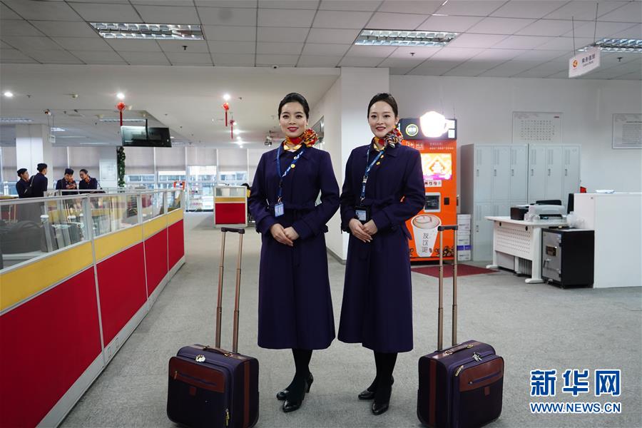 1月10日,天津航空乘務(wù)員付紅宇(左)和同事陶鑫鑫準(zhǔn)備前往機(jī)場(chǎng)。新華社記者王暉攝