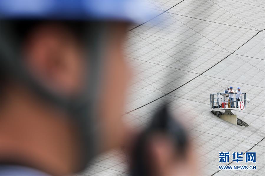 8月28日,工作人員在“中國(guó)天眼”內(nèi)進(jìn)行檢修。新華社記者歐東衢攝