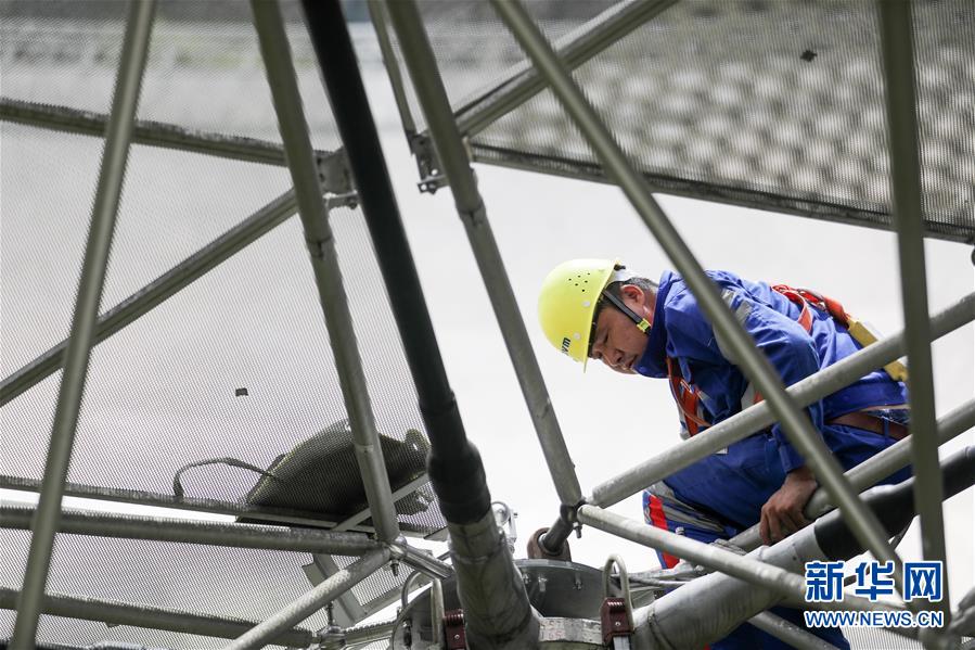 8月28日,工作人員在對FAST反射面板進行檢修。新華社記者歐東衢攝