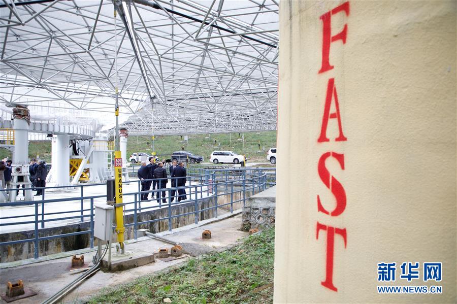 1月11日,專家學者對“中國天眼”進行考察(檢修期間拍攝)。新華社記者劉續(xù)攝