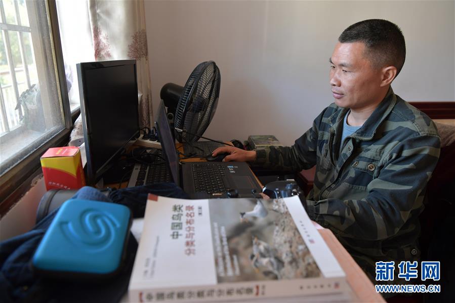 在江西九連山國家級(jí)自然保護(hù)區(qū)潤洞保護(hù)站,陳志高在電腦上查看拍攝的照片(1月8日攝)。新華社記者 彭昭之 攝
