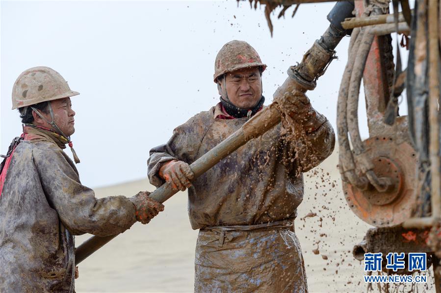 1月13日,鉆井工在連接鉆桿。地球物理勘探是油氣開發(fā)的第一步,相當(dāng)于給地球做CT。物探工人按照嚴(yán)格的測線部署,在相應(yīng)位置鉆井,然后實(shí)施地震,采集地震波數(shù)據(jù)??蒲腥藛T通過數(shù)據(jù)組成的“CT片”,就能夠清晰地“看”到地下的地質(zhì)結(jié)構(gòu),判斷哪里埋藏有石油或者天然氣。2019年10月,東方地球物理勘探有限責(zé)任公司塔里木物探處2113隊(duì)進(jìn)入新疆塔克拉瑪干沙漠腹地,開始中古14-21、塔中2兩個區(qū)塊的三維地震勘探。近2000名物探工人將在1000平方公里的范圍內(nèi)一直工作到2020年4月,這也意味著他們將在塔克拉瑪干沙漠腹地連續(xù)度過第14個除夕夜。蘊(yùn)藏著豐富石油天然氣資源的新疆塔克拉瑪干沙漠有“死亡之?!敝Q,氣候干燥,年降水量在50毫米以下,冬季地表最低溫度超過零下30攝氏度,是世界油氣勘探難度最大的地區(qū)之一。為避開風(fēng)季,物探工人每年9、10月份進(jìn)入沙漠,一直工作到來年4月,夜以繼日與黃沙、嚴(yán)寒為伴,用辛勤的汗水,為祖國找油找氣。新華社記者丁磊攝