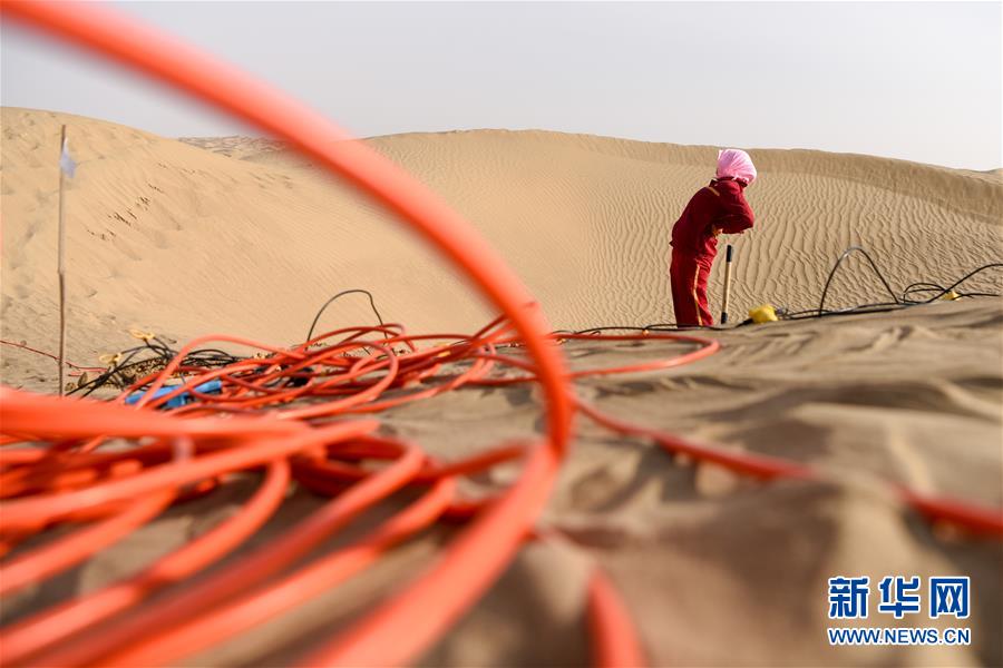 1月14日,放線工張進(jìn)秀在放完一組檢波器后直起腰休息。地球物理勘探是油氣開發(fā)的第一步,相當(dāng)于給地球做CT。物探工人按照嚴(yán)格的測線部署,在相應(yīng)位置鉆井,然后實(shí)施地震,采集地震波數(shù)據(jù)??蒲腥藛T通過數(shù)據(jù)組成的“CT片”,就能夠清晰地“看”到地下的地質(zhì)結(jié)構(gòu),判斷哪里埋藏有石油或者天然氣。2019年10月,東方地球物理勘探有限責(zé)任公司塔里木物探處2113隊(duì)進(jìn)入新疆塔克拉瑪干沙漠腹地,開始中古14-21、塔中2兩個區(qū)塊的三維地震勘探。近2000名物探工人將在1000平方公里的范圍內(nèi)一直工作到2020年4月,這也意味著他們將在塔克拉瑪干沙漠腹地連續(xù)度過第14個除夕夜。蘊(yùn)藏著豐富石油天然氣資源的新疆塔克拉瑪干沙漠有“死亡之?!敝Q,氣候干燥,年降水量在50毫米以下,冬季地表最低溫度超過零下30攝氏度,是世界油氣勘探難度最大的地區(qū)之一。為避開風(fēng)季,物探工人每年9、10月份進(jìn)入沙漠,一直工作到來年4月,夜以繼日與黃沙、嚴(yán)寒為伴,用辛勤的汗水,為祖國找油找氣。新華社記者丁磊攝