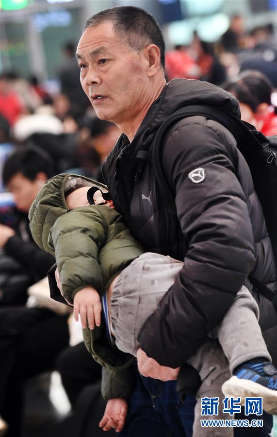 1月14日,在西安北站候車大廳,一位旅客抱著睡熟的孩子等待上車。路再遠(yuǎn)、再艱辛,也擋不住回家的腳步。在西安北站的每一個(gè)角落,處處充滿溫情和歸鄉(xiāng)的盼望。連日來,西安北站日均發(fā)送旅客12.1萬人次,一列列春運(yùn)的列車,載著中國(guó)人的鄉(xiāng)愁,駛向遠(yuǎn)方。新華社記者陶明攝