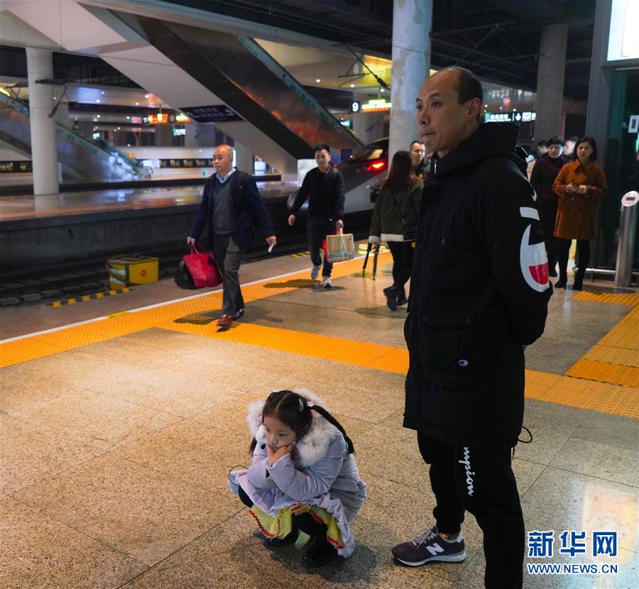 1月3日,由于卞菁值乘的動(dòng)車晚點(diǎn),等待時(shí)間較長的朱梓芮(左)流露出稍許失望。新華社記者 胡晨歡 攝