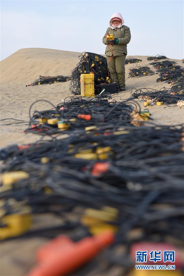 查線工王秋玲在檢測待用的檢波器(1月14日攝)。新華社記者 丁磊 攝