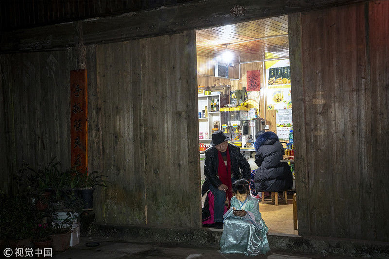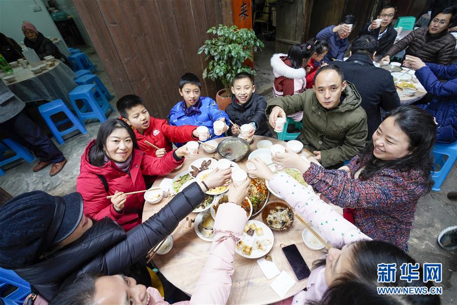 2019年1月26日,重慶中山古鎮(zhèn),880桌“千米長宴”5萬人共品年味。當(dāng)?shù)刳s來的村民。