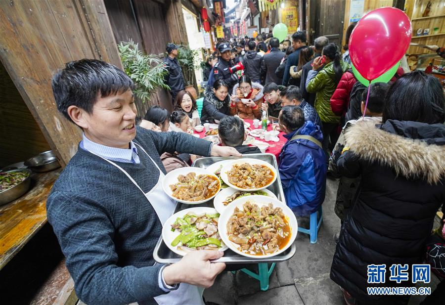 2019年1月26日,重慶中山古鎮(zhèn),880桌“千米長宴”5萬人共品年味。