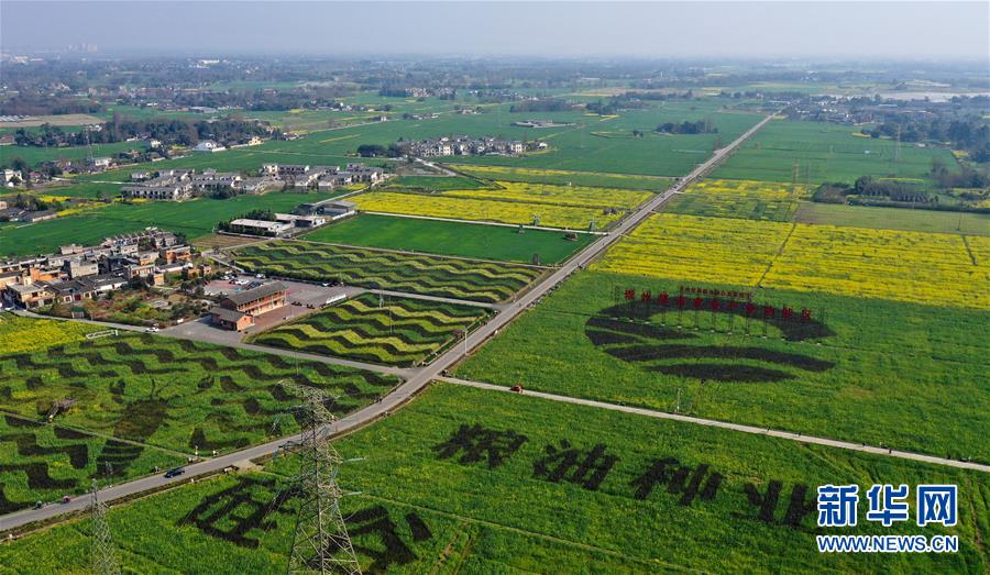 2月25日在四川省崇州市農業(yè)產業(yè)功能區(qū)拍攝的油菜花田(無人機照片)。 初春時節(jié),正值農時。成都平原西部的大邑、崇州等縣市油菜長勢良好,一片生機盎然的景象。 新華社記者 王曦 攝
