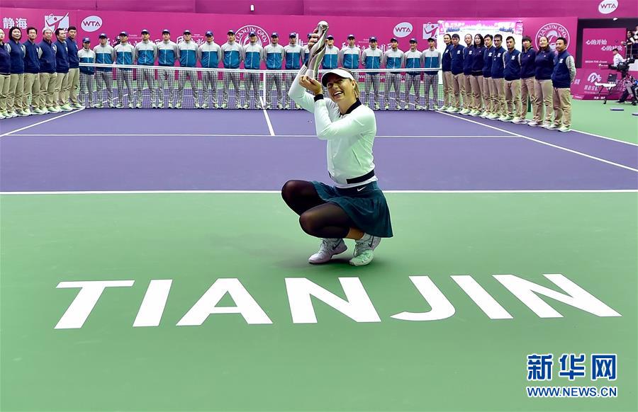 圖為2017年10月15日,莎拉波娃在2017年WTA天津網(wǎng)球公開賽單打決賽中戰(zhàn)勝白俄羅斯選手薩巴倫卡,獲得冠軍。 新華社記者岳月偉攝