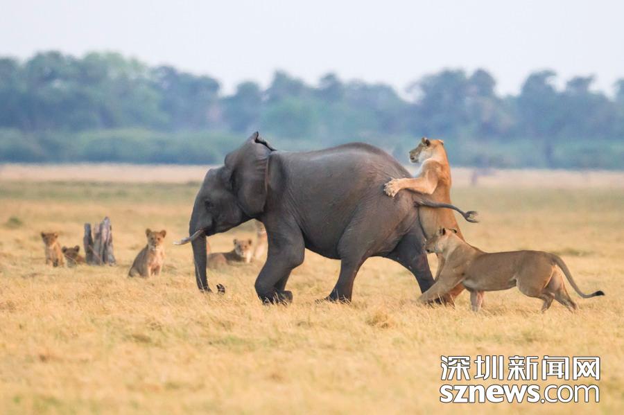 小象遭獅子獵食,象群趕到霸氣護崽。