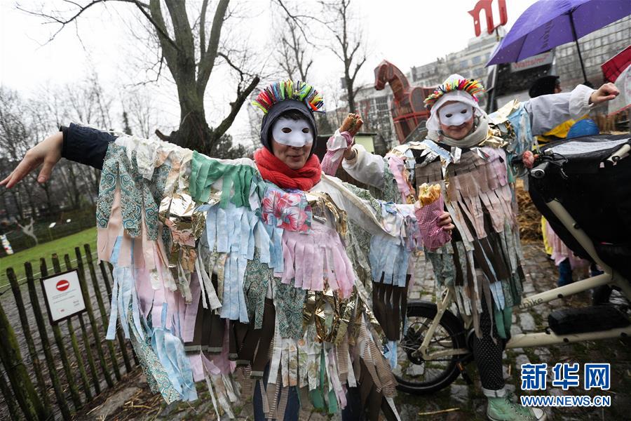 2月27日,人們?cè)诒壤麜r(shí)布魯塞爾參加狂歡節(jié)活動(dòng)。 新華社記者鄭煥松攝