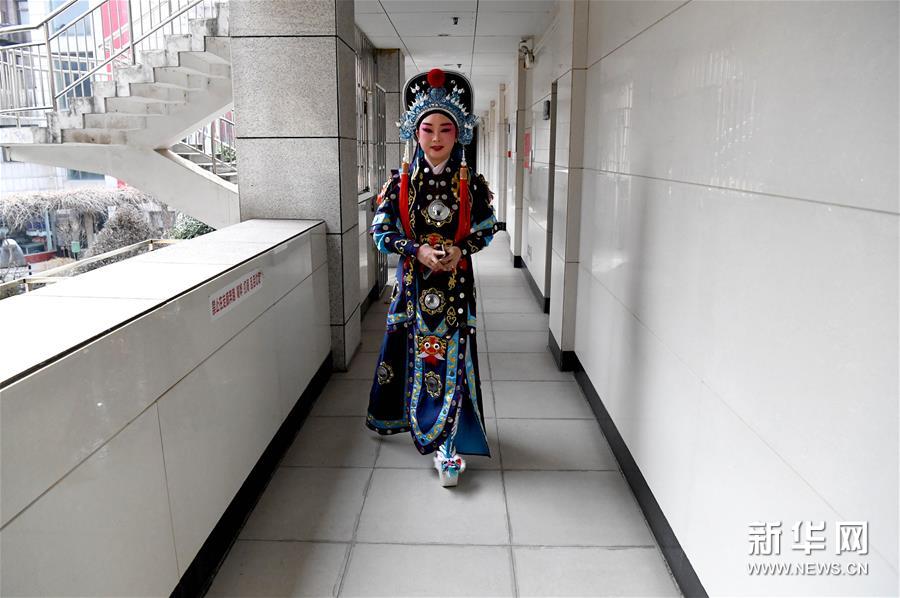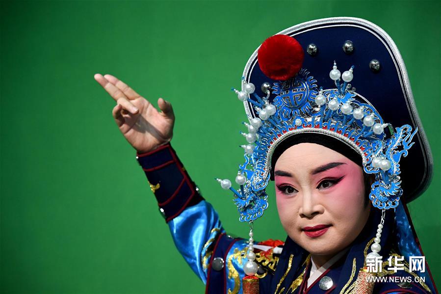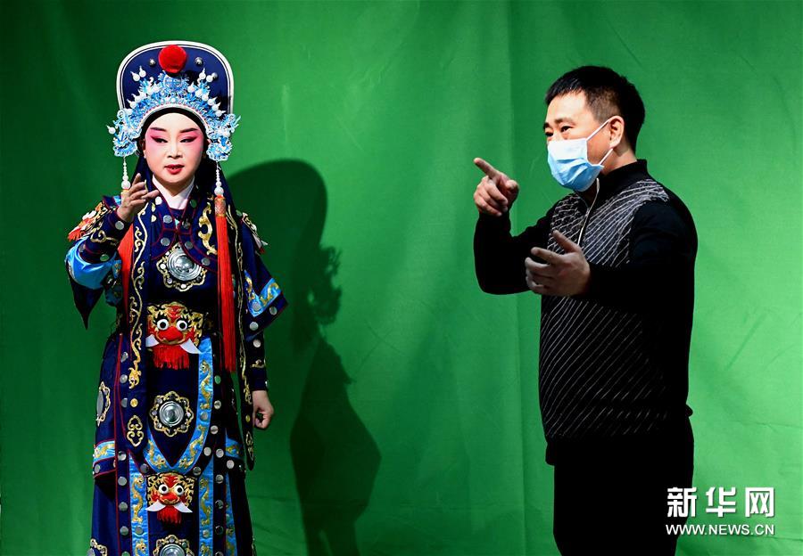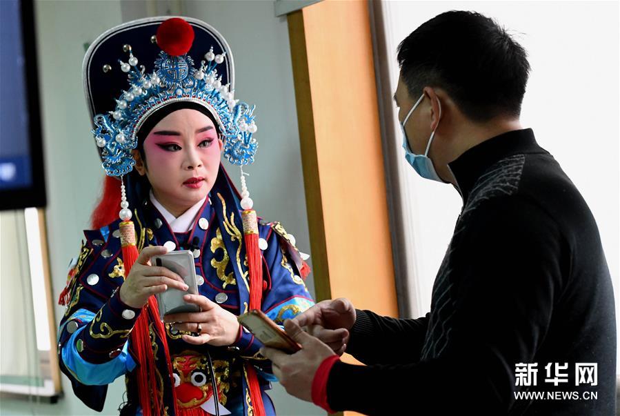 3月3日,李金玲在鄭州文化館通過直播的形式進(jìn)行帶妝表演豫劇《花木蘭》選段。李金玲是鄭州工程技術(shù)學(xué)院音樂舞蹈學(xué)院的教授,也是豫劇常派弟子。14歲開始學(xué)習(xí)豫劇的她師從豫劇大師常香玉的次女陳小香。多年來,除了本職工作教學(xué)外,她還作為文化志愿者,到各地義務(wù)表演、授課,致力于豫劇的傳承與發(fā)展。疫情防控期間,鄭州文化館展開線上文藝戰(zhàn)“疫”,開通網(wǎng)絡(luò)直播平臺,李金玲也作為志愿者走進(jìn)“直播間”,進(jìn)行帶妝表演和教學(xué),精彩的“云”上表演吸引了不少戲迷的關(guān)注?!霸谶@個特殊時期,通過直播的形式為大家表演,希望可以讓更多的人喜歡和了解豫劇,感受它獨特的魅力。”李金玲說。新華社記者 李安 攝