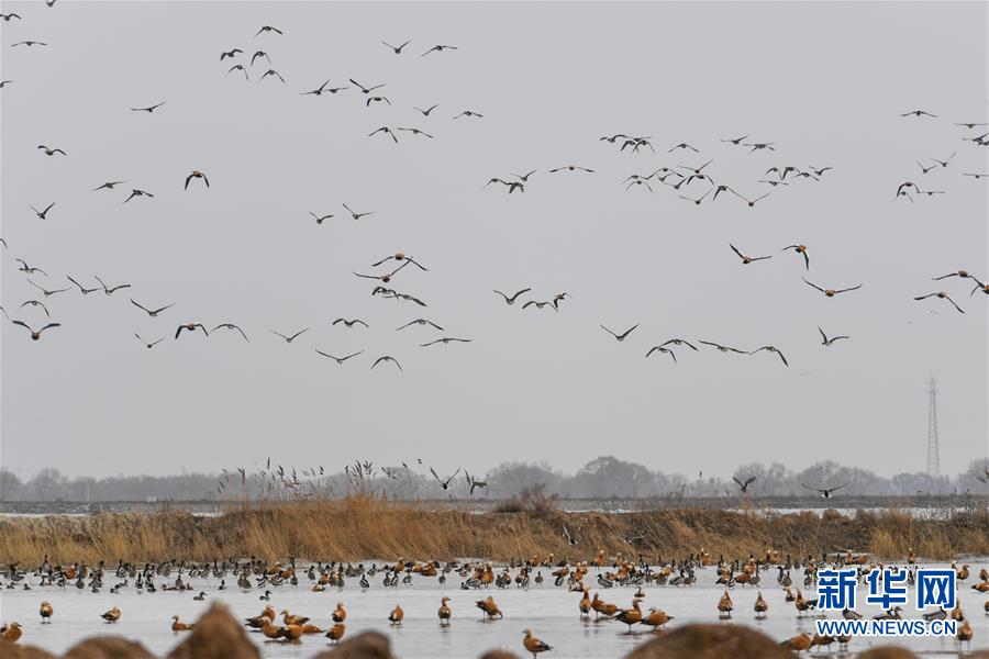 這是在海流水庫拍攝的候鳥(3月9日攝)。新華社記者 連振 攝