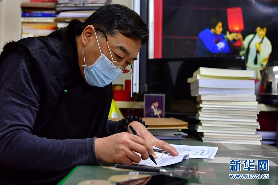 武凌云在太原市晉劇藝術(shù)研究院的辦公室修改劇本(3月4日攝)。 新華社記者 曹陽(yáng) 攝