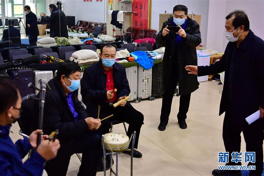 武凌云(右二)在太原市晉劇藝術(shù)研究院為戲迷直播晉劇排練(3月9日攝)。 新華社記者 曹陽(yáng) 攝