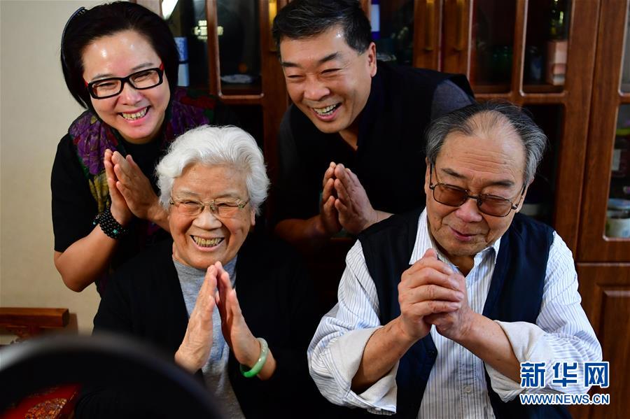 武凌云(右二)一家人在合演結束后向戲迷致謝(3月6日攝)。 新華社記者 曹陽 攝