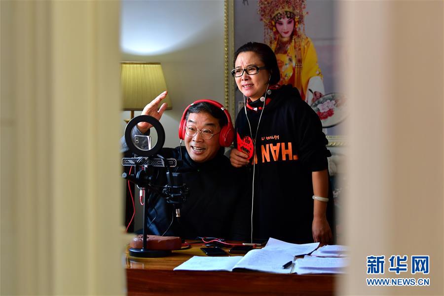武凌云、王春梅夫妻在直播中表演晉劇片段(3月5日攝)。 新華社記者 曹陽(yáng) 攝