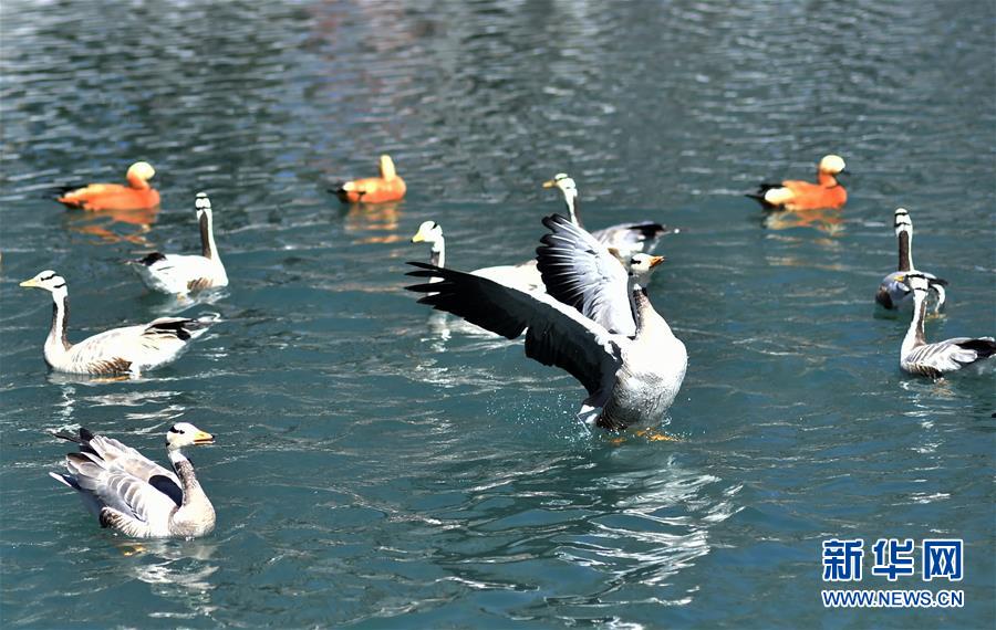 拉薩宗角祿康公園湖中嬉戲的鳥(niǎo)兒(3月10日攝)。 隨著氣候回暖,西藏的春天悄然到來(lái)。在“日光城”拉薩,高原大地從寒冬中漸漸醒來(lái)。 新華社記者 覺(jué)果 攝