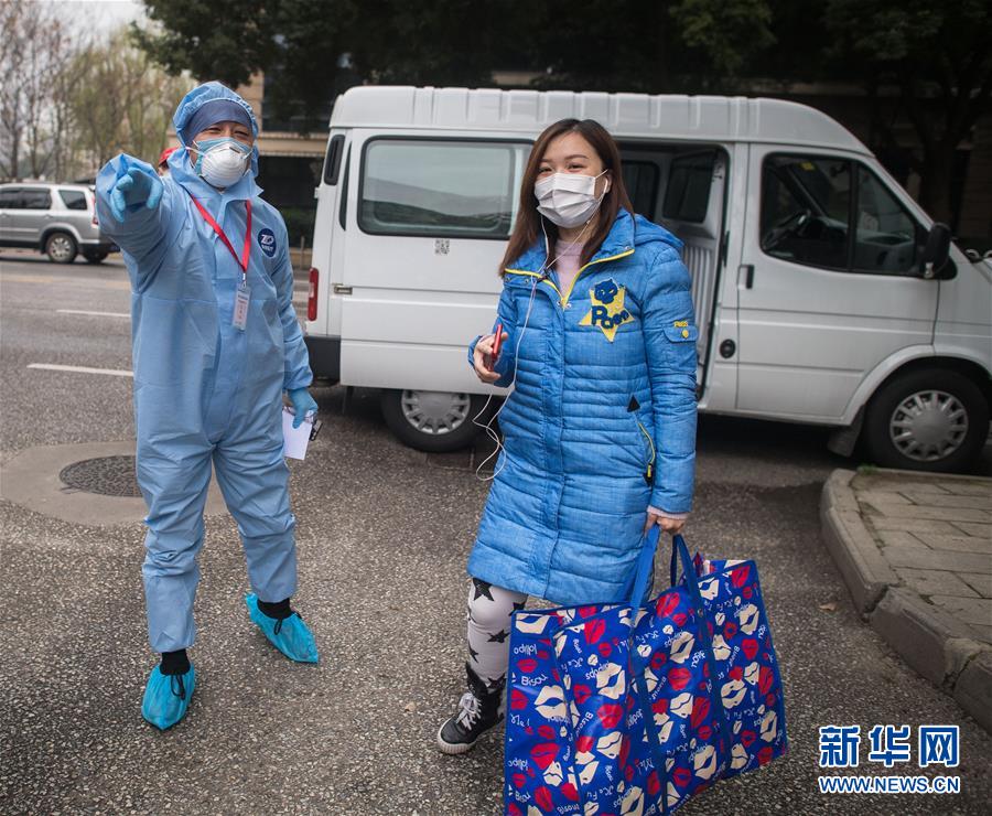 3月12日,黎婧(前)在志愿者的陪護下登上大巴。 3月12日,插畫師黎婧和84位病友離開自己居住的武漢軟件工程職業(yè)學院康復驛站,回到自己家中。他們都是治愈出院的新冠病毒肺炎患者,已經在武漢軟件工程職業(yè)學院康復驛站進行了14天醫(yī)學觀察,達到醫(yī)學標準,成功解除隔離。他們由專車運送至所屬社區(qū)附近的集散點后,在社區(qū)工作人員的陪同下回家。 新華社記者 肖藝九 攝